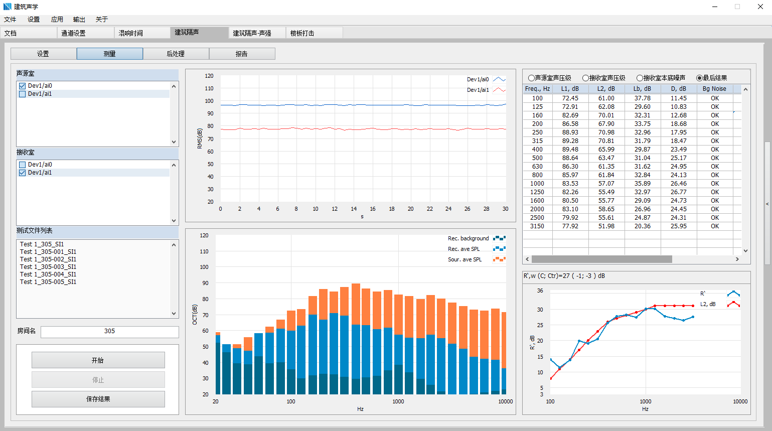 ● 可視化測(cè)試進(jìn)程,直觀顯示房間測(cè)點(diǎn)聲壓級(jí)變化及聲壓級(jí)差